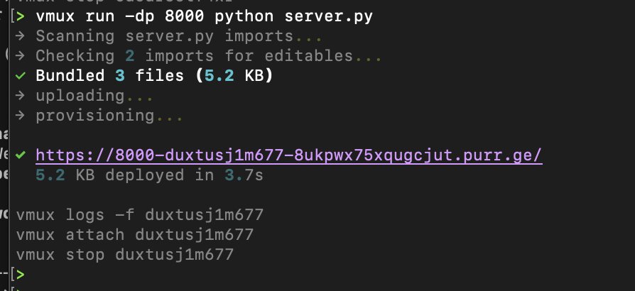 A lot of care went into the bundler and CLI — feels familiar to Docker with `vmux ps`, `vmux prune`. Deploy to preview in under 3 seconds cold start.